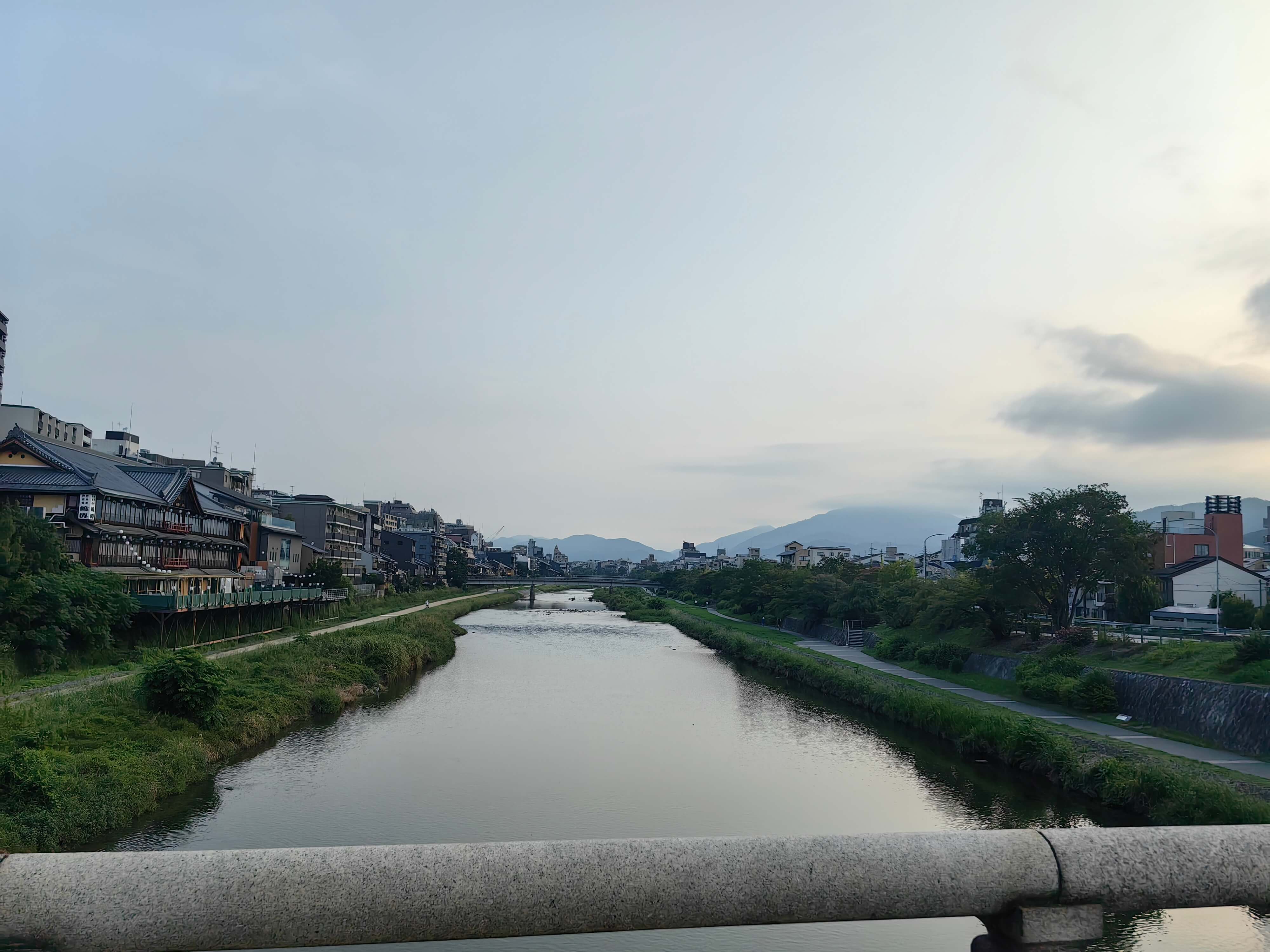 朋友要回旅馆休息,我吃完饭觉得又有力气了,决定独自去伏见稻荷大社。 我们俩在出町柳站分开,正好在鸭川三角洲附近,京阿尼不少动画的取景地,可惜天黑了拍得不是很清楚。 一个人在异国他乡渐深的暮色里,漫无目的地乱逛很快活。